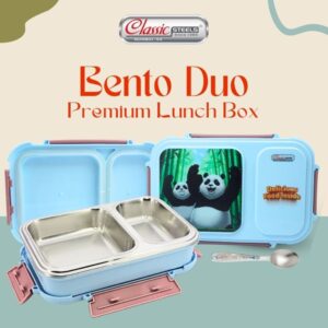 The Bento Duo Panda is an adorable and practical lunch box designed with twin compartments for easy meal separation. Its cute panda design makes mealtime fun while keeping food fresh and neatly organized—perfect for kids and adults alike.