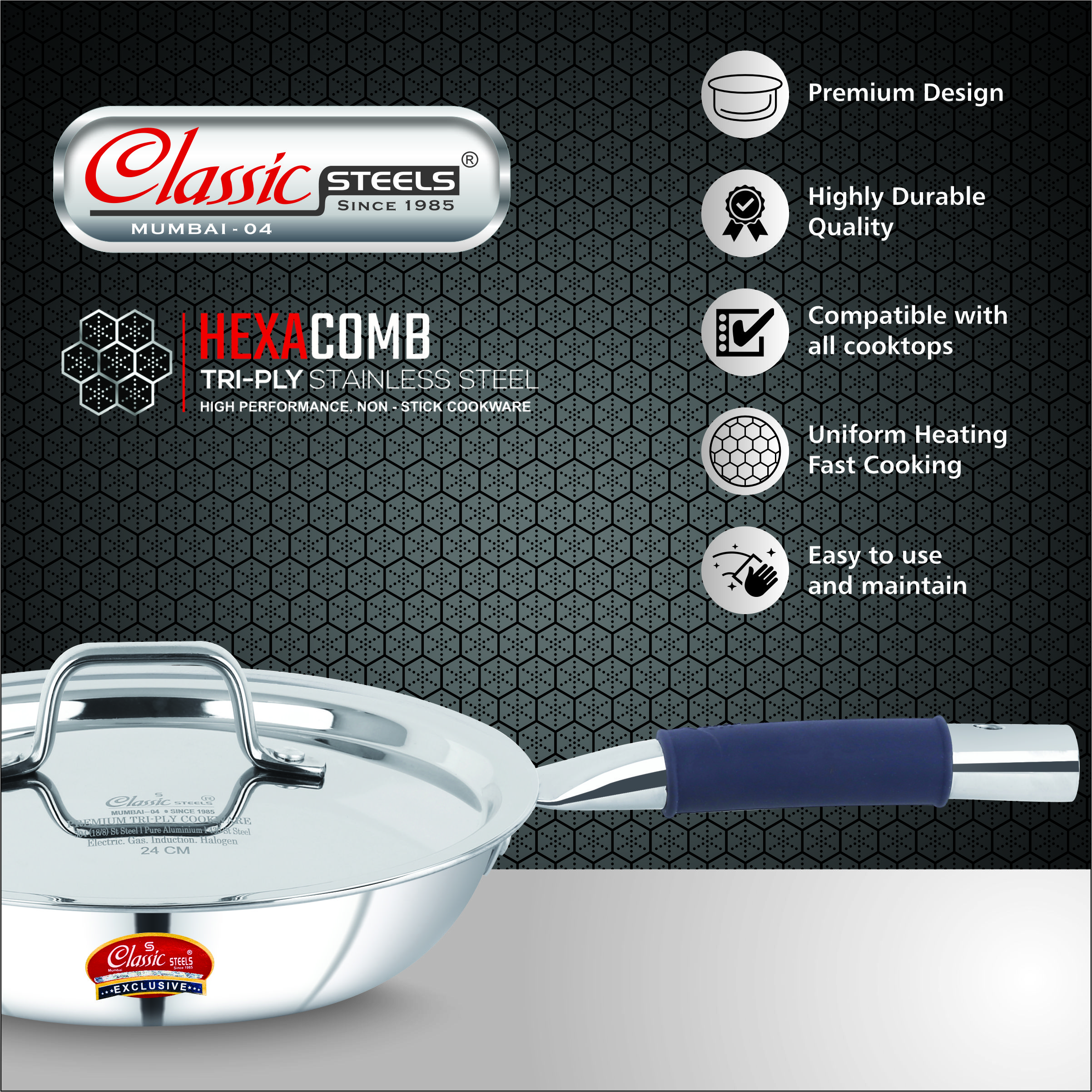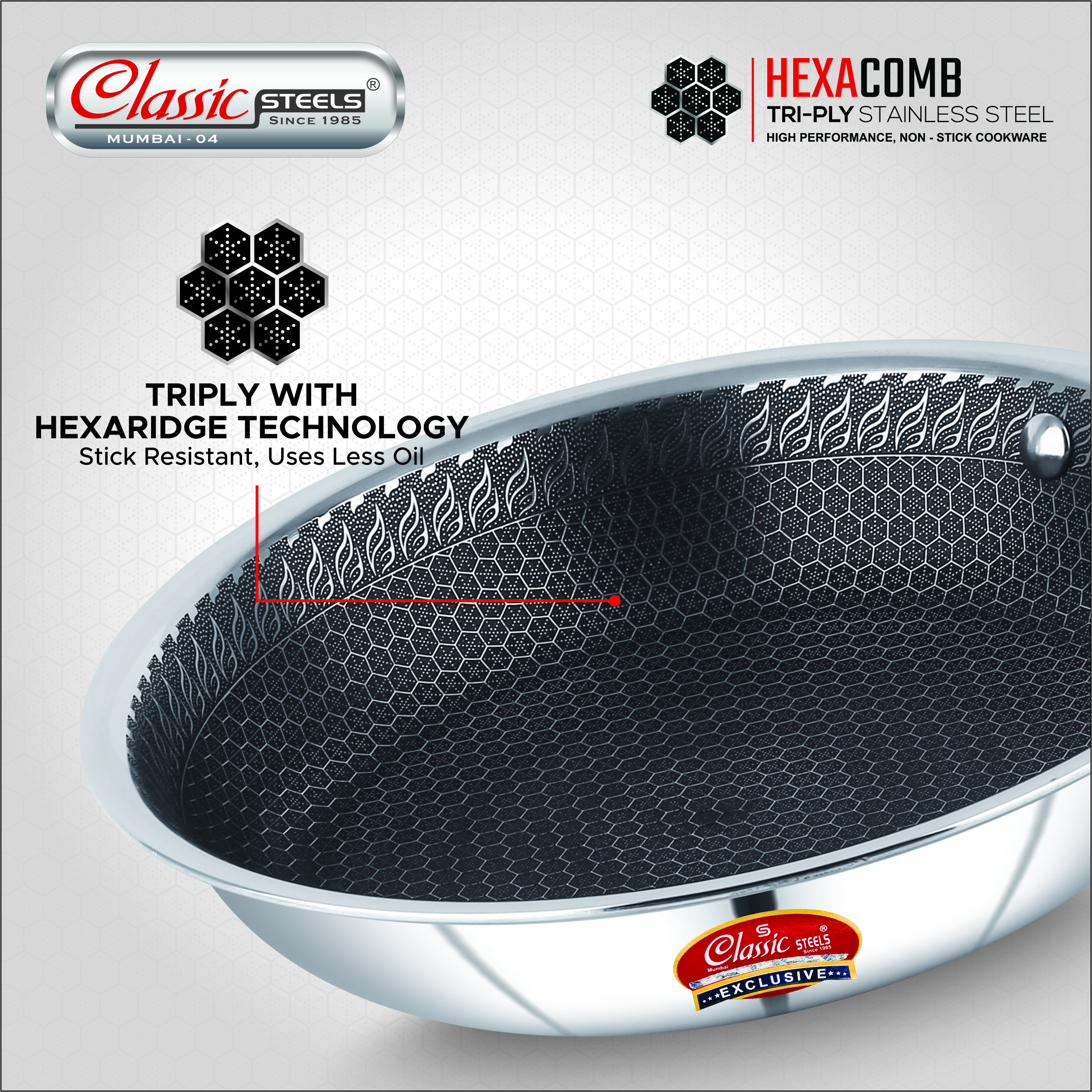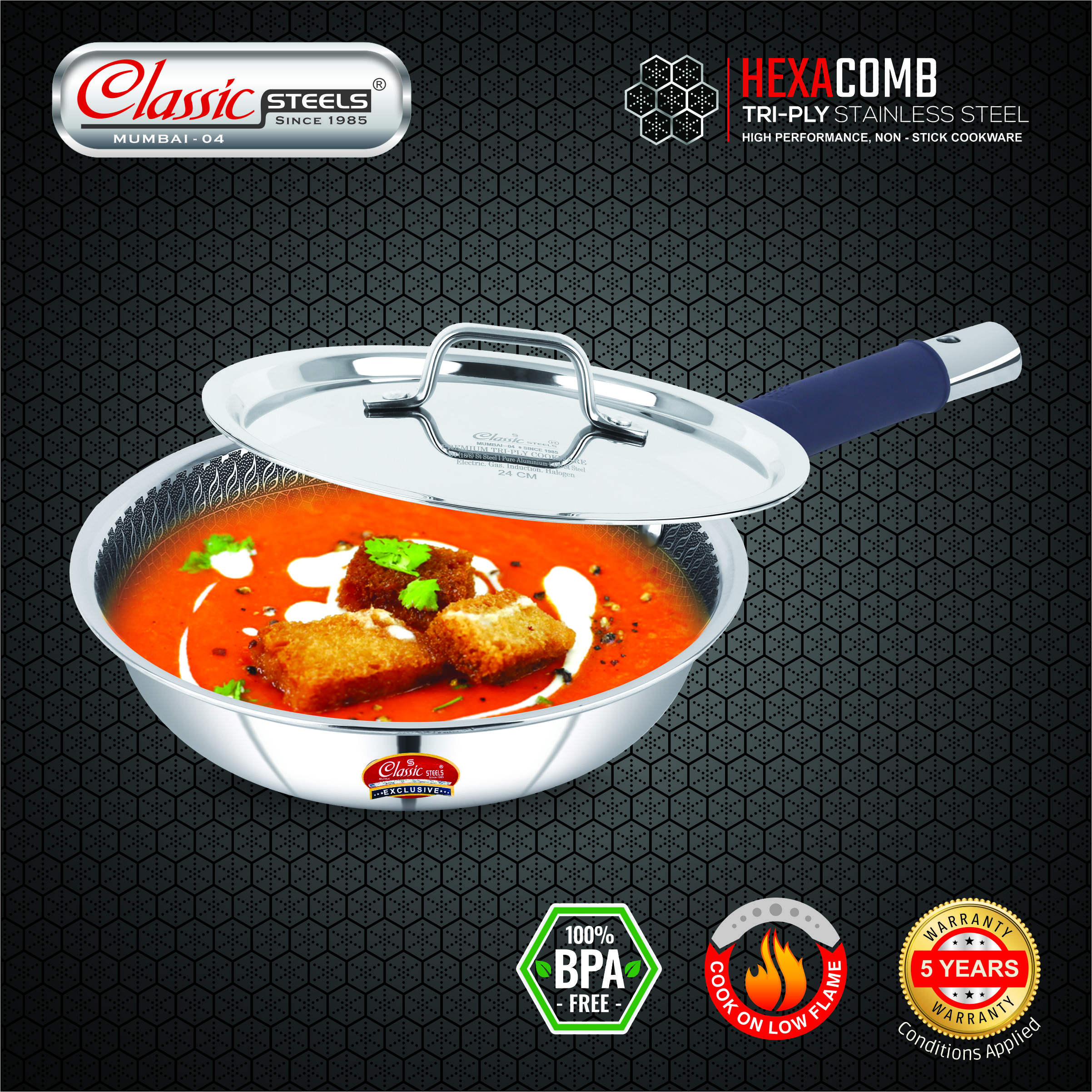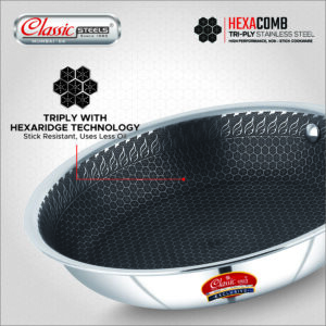 Classic Steels Hexa Comb Triply Frypan  is a premium kitchen pan made from durable triply stainless steel for even heat distribution and efficient cooking.