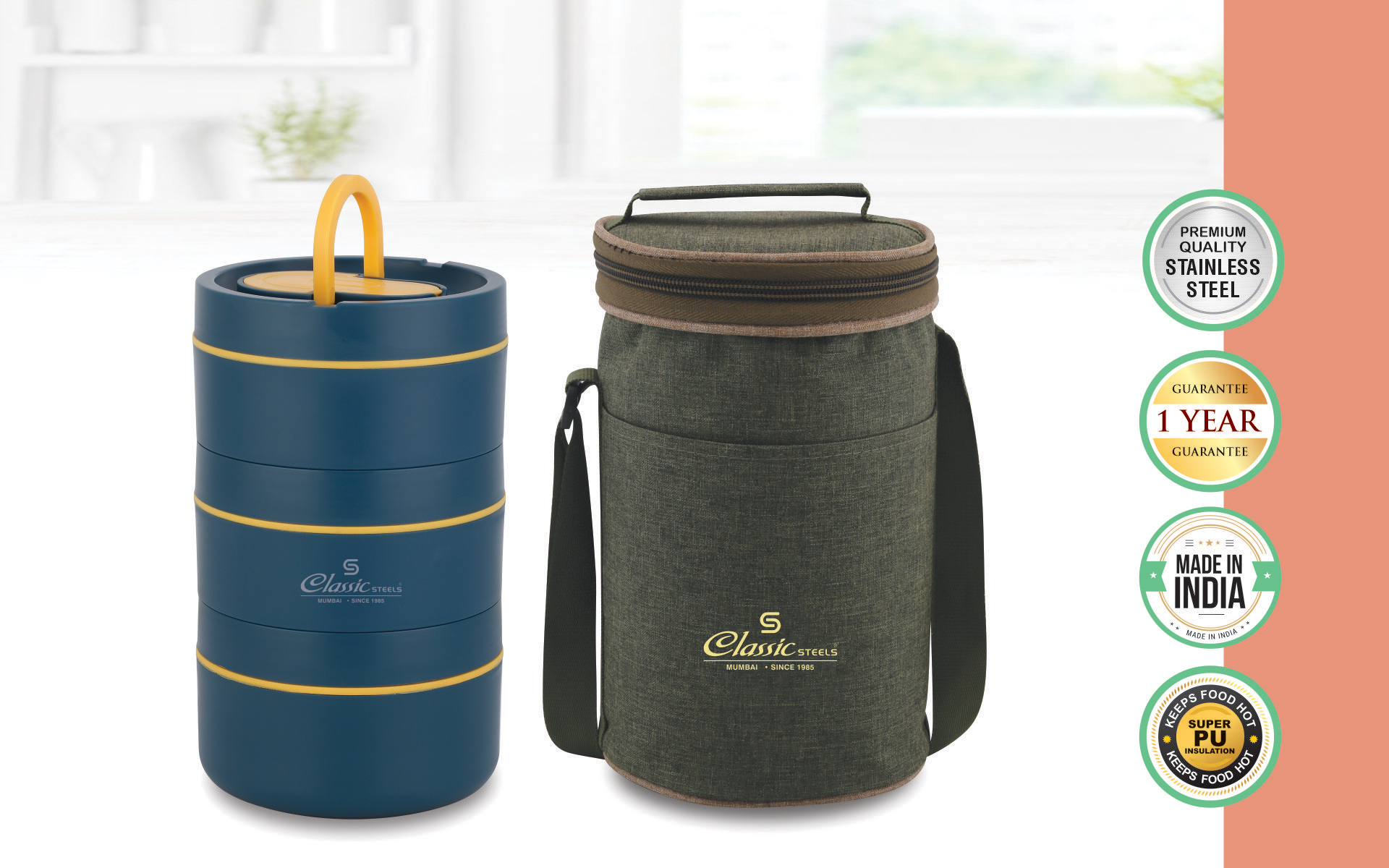 The Sattvic3 Lunch Box Set includes one 550 ml and two 350 ml containers, perfect for balanced meals on the go. Made from high-quality, food-safe materials, it keeps your food fresh and neatly organized. Ideal for office, school, or travel use.