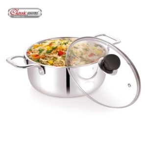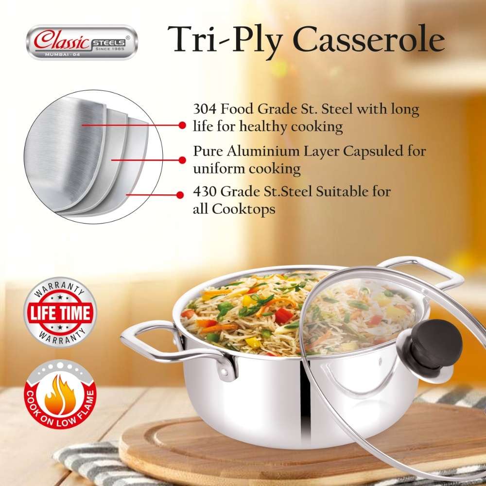 The St. St. Steel Evergreen Casserole is made from high-quality stainless steel for lasting durability and shine. Its double-walled insulation keeps food hot and fresh for hours, making it perfect for daily use and family gatherings.